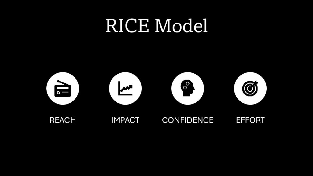 RICE is a prioritization framework designed to evaluate initiatives systematically based on Reach, Impact, Confidence, and Effort. It is particularly valuable for balancing opportunity size with feasibility such as deciding how to effectively maximizing project outcomes.